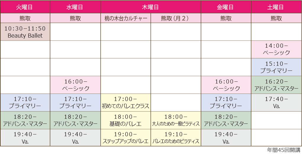 ルニオンバレエレッスン表